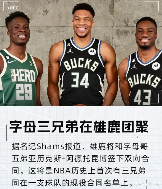 哇塞!密尔沃基雄鹿好多阿德托昆博!殊不知,这并不是一句玩笑话,而是它真实存在。因为从今往后,雄鹿阵中的阿德托昆博就将从两个增加到三个。没错,字母哥一家五兄弟将有三个会在新赛季为密尔沃基雄鹿效力。